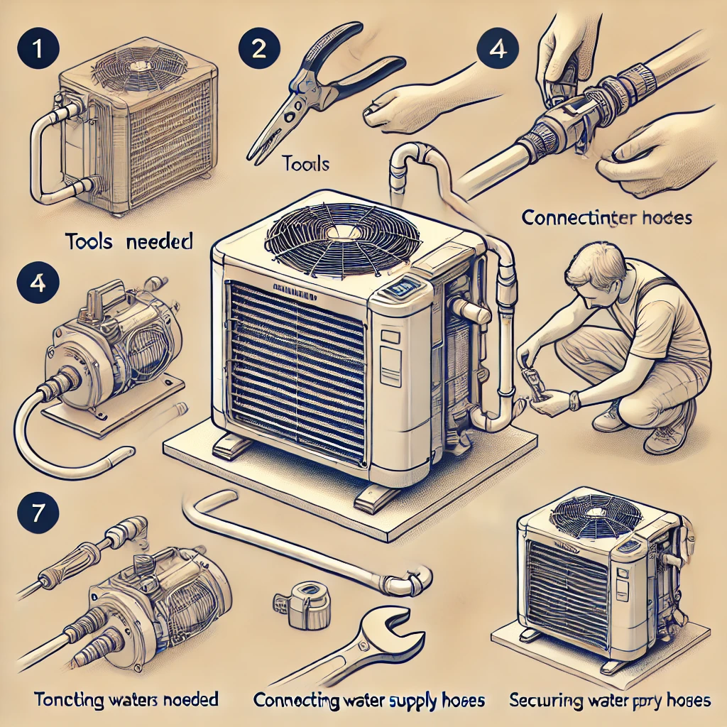 ۱. اتصال ورودی آب: شیلنگ ورودی آب را به پمپ متصل کنید و از محکم بودن آن اطمینان حاصل کنید. ۲. اتصال خروجی آب: خروجی پمپ را به مسیر تأمین آب پوشالهای کولر متصل نمایید. ۳. محکمسازی پمپ: پمپ را در محل خود ثابت کرده و بستها را محکم کنید. ۴. بررسی و تست اولیه: قبل از روشن کردن کولر، مسیر آب را باز کنید و نشتیها را بررسی کنید.